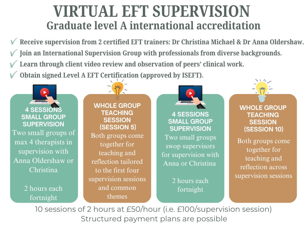 This group supervision programme provides the required supervision hours for Level A accreditation with the International Society for Emotion-Focused Therapy (ISEFT).