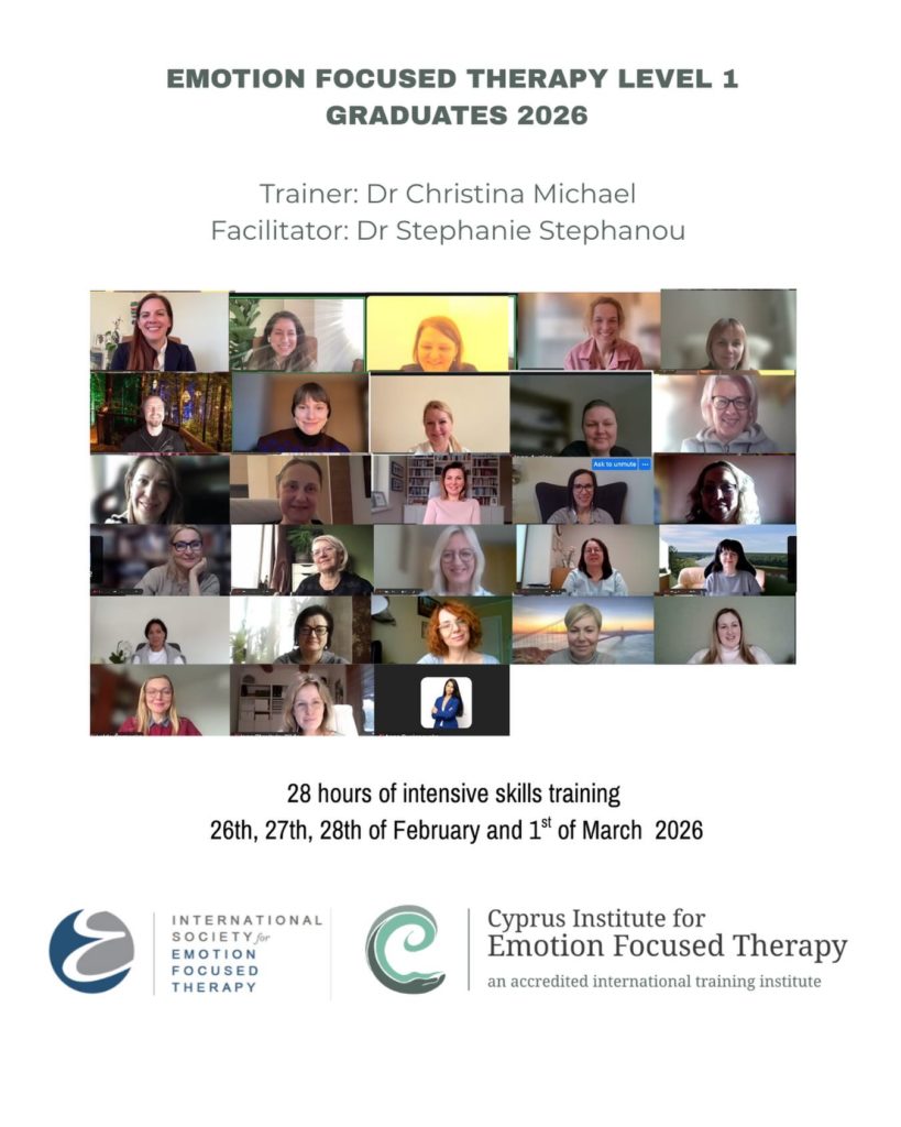 These trainings were made even more meaningful by the presence of two CiEFT graduates, Dr Stephanie Stephanou and Dr Ioannis Mavrommatis, who facilitated alongside Dr Christina Michael. Seeing our graduates contribute to this important international step reflects the growth of our institute, the strength of our training community, and the meaningful role CiEFT continues to play in the development of Emotion-Focused Therapy beyond Cyprus.