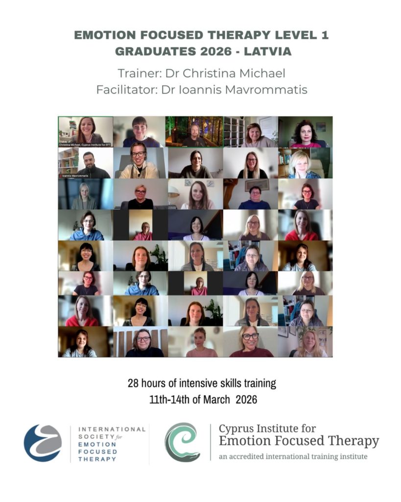 CiEFT is proud to share the successful completion of the first-ever Emotion-Focused Therapy (EFT) Level 1 training in Latvia, held on 26–28 February and 1 March 2026, led by Dr Christina Michael. To introduce EFT in a new country for the very first time carries not only excitement, but also a profound sense of responsibility towards the therapists we train, the communities they serve, and the future growth of EFT itself.